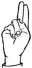 На ћирилици написано АНДРЕЈ ЋУРЧИН састоји се из 12 слова [?]. Исписано ћириличном једноручном азбуком за глувонеме: